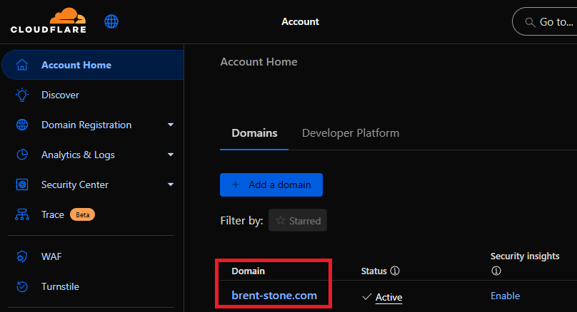 - A domain, like my brent-stone.com, using Cloudflare as your registrar.