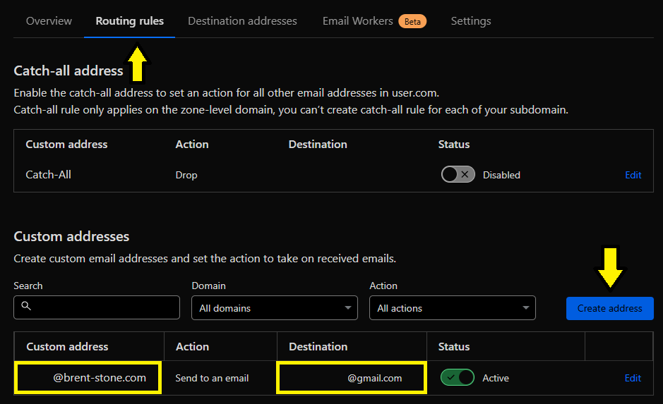 Step One: Alias inbound email on Cloudflare¶