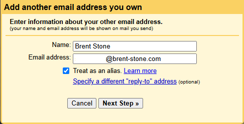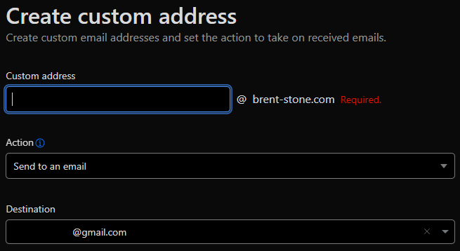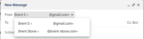 For nearly free, enhance the professionalism of your online persona by adding an alias to gmail with your custom domain name like brent-stone.com. This avoids needing to pay monthly fees for services like Google Workspace if all you're really after is a custom email address.