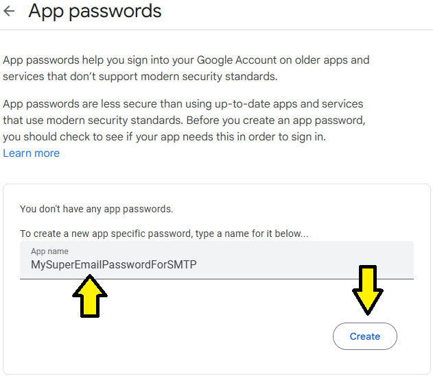 Write down the app password