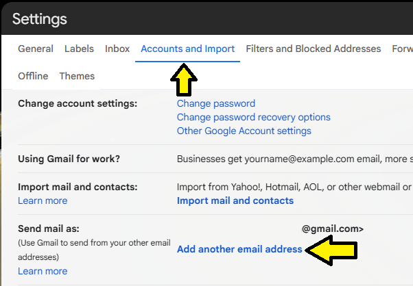 Under the "Accounts and Import" tab click the blue link for "Add another email address"